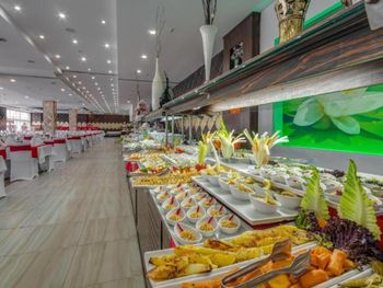 К сожалению, нам не понравилось всё, что касается питания, номеров и чистоты. В ресторане всегда стоит очень неприятный запах, из-за которого не хочется находиться в помещении. Грязные витрины с едой, тарелки и одежда персонала ресторана. Мнимое разнообразие еды, хотя на самом деле всё одно и то же каждый день. Мало свежих фруктов - только яблоки, сливы и арбуз. Очереди за едой были всегда, разве что помимо завтрака. Сильный дым от гриля, который не вытягивали вытяжки, из-за чего было невозможно сидеть за столами ближе к кухне во время ужина. Для нас было удивлением, что ужин начинается только с 19:00, и все посетители приходят к началу ужина - отчего появляются огромные очереди. Что касается номера, при заселении обнаружили в кровати муравьев, с которыми персонал справился только спустя 2 дня и отказали в смене номера на другой, а также не было горячей воды после 15:00, но кажется это проблема всех номеров.