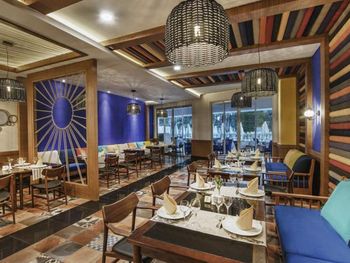 Прекрасный, чистый отель, на территории множество красивых растений. Очень красивый закат. Море чистое, бирюзовое, почти сразу глубокое. Разнообразная еда, овощи, филе говядины, баранина, рыба дорадо, сибас, красная ежедневно. Много пирожных и фруктов, в том числе клубника, черешня, дыня, арбуз. Отличный сервис, не успеешь сесть за стол, официант уже спрашивает, что принести!