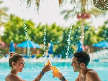 Обширная, ухоженная территория. Большие бассейны, есть с подогревом (актуально в январе). Много баров. Напитки пить можно, даже кофе. Есть тематические рестораны (опция без оплаты).