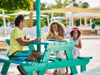 Помимо основного ресторана Palm, предлагающего «шведский стол», есть 4 ресторана с обслуживанием по меню. Расположенный на пляже ресторан Del Mar предлагает блюда из свежих морепродуктов, в Fattoosh можно попробовать восточную кухню на открытом воздухе, Ranchero знакомит с потрясающим мексиканским вкусом, а Le Bistro порадует гостей широким выбором блюд французской и международной кухни, которые по достоинству оценят гурманы.