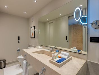 На территории отеля также есть 9 баров, включая Tropicana Pool Bar, Bella Vista с панорамным обзором, Club Soda и Zaitouna Lounge, где подают освежающие коктейли и кальяны.