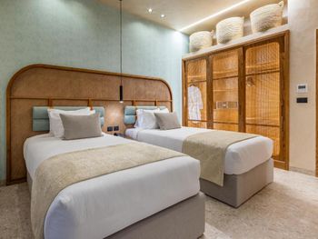 очень много людей, очереди к каждому пункту выдачи еды на завтрак обед и ужин( например за хлебом обычно очередь 10 чел) все очень медленно делают. Теплые бассейны холодные. Номера делюкс как в старой 2х звездочной гостинице. Самое страшное что все и везде обрабатывают ужасно вонючим антисептиком. Буквально все всегда и везде. этот запах даже на пляже так как постоянно обрабатываются лежаки. В предпоследний день гремела музыка до ночи а утром в день отьезда зачемто пришел уборщик в 8 утра и стал греметь в дверь и всех разбудил со словами что ему надо убрать номер. Был естественно послан на х..