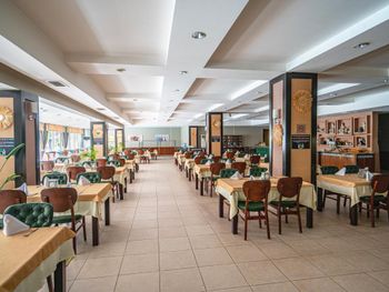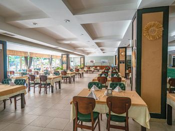 Еды было много, но весьма простая. Мы ели обычно овощи, сыры и оливки. Мясо было чересчур жареное, мы брали иногда курицу, другое мясо не брали. В столовой много людей, за кофе стоит очередь. Часто не хватало чашек, тогда сотрудник отеля с суровым лицом наливал кофе в пластмассовые большие стаканы. Вино было очень посредственное, бокалов не хватало, наливают вино в коктейльные бокалы, коньячные бокалы, бармены не улыбаются, общаются как полицейские с нарушителями. Улыбаются там только женщины - сотрудники.
