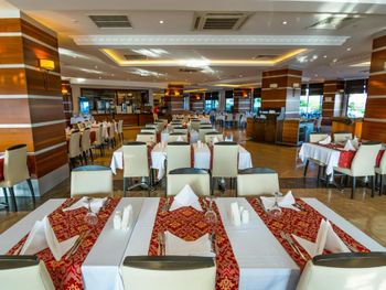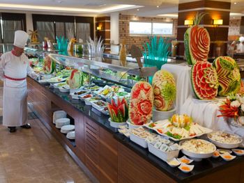Отель говорит, что они 5 звезд. Максимум 1. Веселье начинается с заезда они должны заселить в 14.00 наш номер не был готов даже в 16.00. В номере нет ничего даже стаканчика, чтоб попить. Отношение персонала, мягко сказать скотское. Что либо добиться от них не реально! И есть такой атракцион под названием ЛИФТ. Их в отеле 4 примерно на 3000 человек. Его не дождешься. Еда,однообразная и к ней большая очередь.