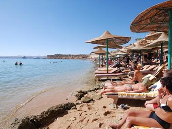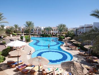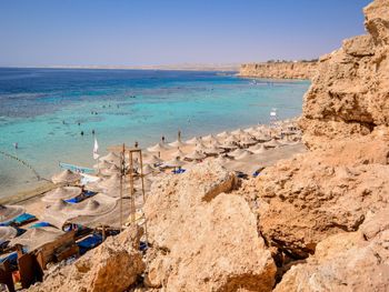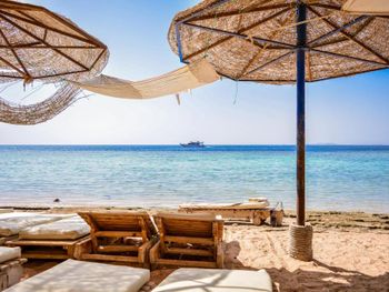 Пляж с кораллами маленький, очень мало лежаков и зонтиков. Отель находится на 3 ей линии. Всего 3 раза в день автобус возит на пляжи бесплатные и платные. Если едешь на автобусе то выбор лежаков ограничен. Пришлось ездить на платный пляж на такси. Самый лучший пляж el phanara 4$ . И такси до пляжа 1-2$. В баре у бассейна не было вина. Вино только за ужином и обедом в ресторане.