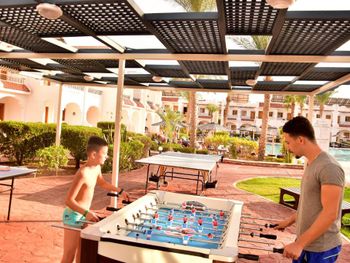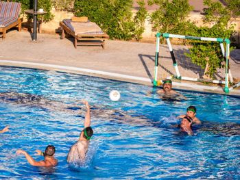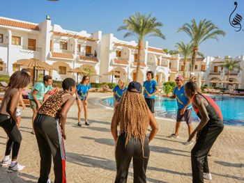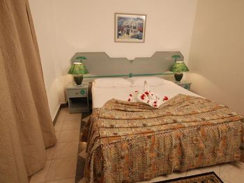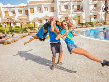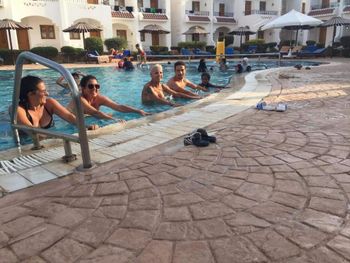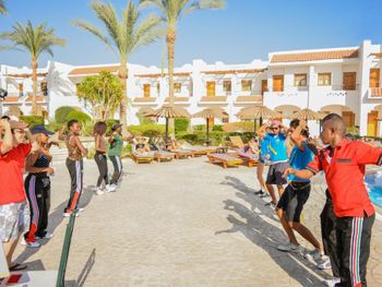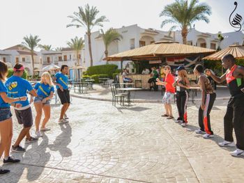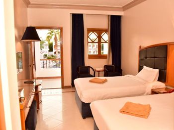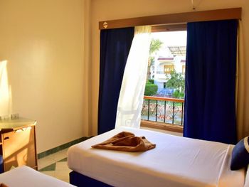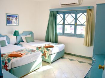 За ужином за 2 бокала вина взяли 100 фунтов. Никто не сказал, что спиртное платное. Просто подошли после ужина и потребовали оплату, при этом не показали никакого прайса и не выдали чека. В комнате очень мало света, после 17.00 в Египте темно и поверьте небольшая комната и ещё плохо освещенная создаёт ощущение конуры Кондиционер не работал на обогрев и ночью в январе из-за этого спать прохладно. Очень громкая анимация. Отель небольшой и построен вокруг бассейна, поэтому все кто находится даже в номере, все-равно участвует в анимации. Любите ложиться пораньше? Выбирайте или более большие отели, где есть тихие корпуса или берите просто отель, где нет все включено, нет бассейна и анимации. Мы жили до этого в отеле OONAS DIVE Club. Для тихого отдыха он более подходящий. Далеко от моря, нет возможности побывать на море, если предварительно не взяли талончик на пляж.