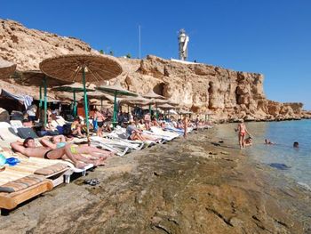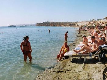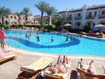 - В отеле специфический контингент отдыхающих, разношёрстные люди, порой казалось, что я попал в лихие 90-е в России - В номере не было горячей воды, так еле тёплая и то, только вечером с маленьким напором, утром приходилось принимать прохладный душ и идти на солнце греться - Питание на троечку по пятибалльной, особого выбора нет, крайне маленький ресторан, который не вмещает все желающих при открытии, приходится стоить в очереди по 10 минут - Бесплатный пляж - это залив в тени, ехать на маршрутке около 10 минут и на нее надо записываться заранее, чтобы забронировать место. Людей там мало - Платный пляж - 150 фунтов за вход с человека, около 300 рублей. Сам пляж на скале, место для купания ограничено шириной в 3 метра. Дно все в кораллах, ноги изрезал