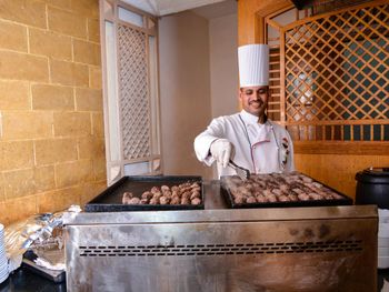 Главный ресторан отеля с видом на бассейн предлагает на выбор "шведский стол" и блюда по меню. У бассейна можно приобрести свежевыжатые соки и бутерброды. В ночном клубе Nagham можно послушать египетскую музыку и потанцевать.