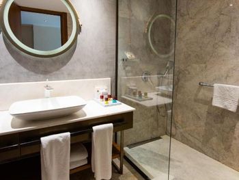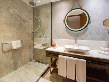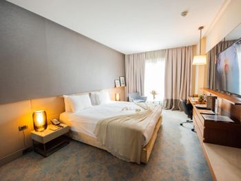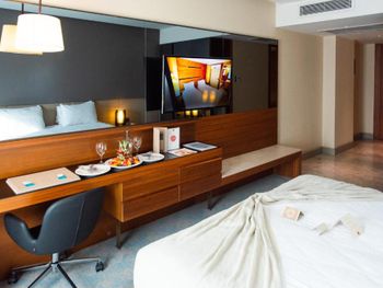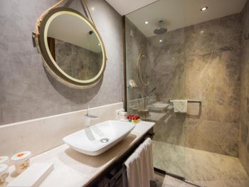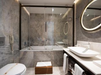 Номерной фонд очень устал, убираются так себе, полотенца далеко не белые и истасканные. Пол в ванной комнате ледяной, душ принимать неудобно...Отель 5 звёзд - халатов нет, а по просьбе, принесли один халат детский , весь линялый от стирки , второй рваный... При обращении на ресепшн, нам ответили , что проблема и обращайтесь к руководству... но при этом в СПА ( за деньги) есть отличные халаты и полотенца...При заселении нас никто не спросил и поселили нас на этаж для курящих, мы первую ночь не спали, будто в номере кто-то все время курил... но на следующий день нас переселили на некурящий этаж. Местоположение отеля неудобное, на большом проспекте, где очень активное движение с одной стороны, а с другой - торговые улицы. Если бы букинг делал более корректные описания, то данный отель мы бы не выбрали. Настоящая оценка отелю - 3 звезды.