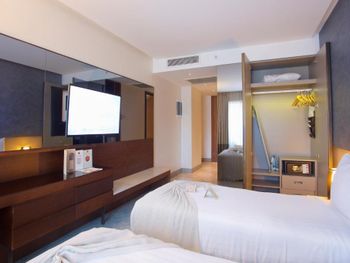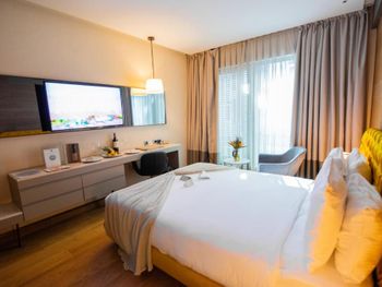 Сам отель задуман интересно, но это не 5 звёзд совсем. Красивый холл, удобно, что есть хорошее кафе , где можно поужинать в позднее время. Хороший СПА , но из-за пандемии не работал бассейн.