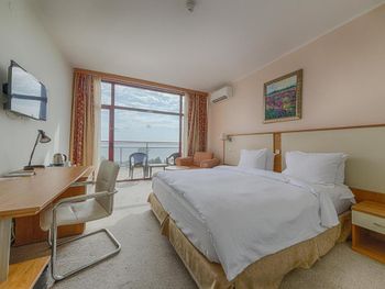 Очень понравилось питание, неплохой алкоголь, просторный и чистый номер, панорамный лифт, собственный пляж, расположение недалеко от набережной.