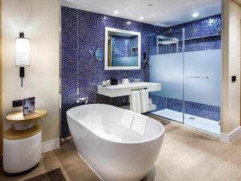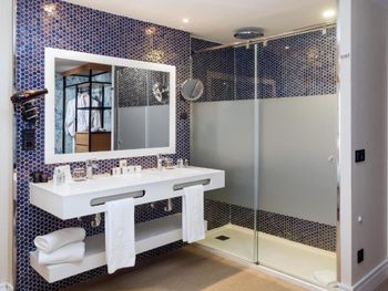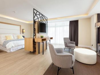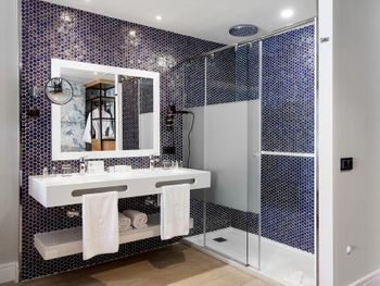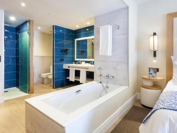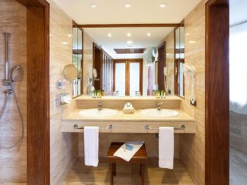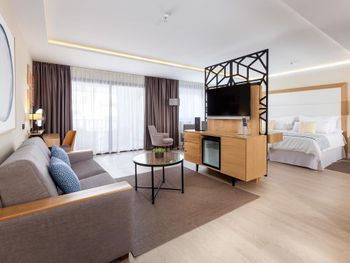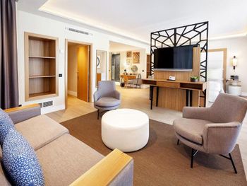 Многие уже писали здесь о «своеобразной» планировке номера (отсутствуют стены в санузле). На своей семье испытали насколько это неудобно. Поверьте это некомфортно, причём как и нашей дочери с сыном ( 22 и 12 лет) , которые жили в одном номере , так и нам с женой живущим в другом номере. Не представляю , что было бы ,если дети были бы младше и мы жили все в одном номере. Завтрак , если сравнивать с немецкими и австрийскими отелями , точно не на 5 звёзд , где то на весьма посредственную четверочку. Ни обедать , ни ужинать в отеле точно не стоит - лучше поискать рестораны поблизости. Найдёте очень неплохие, только не на первой линии конечно. Удивил спа-центр: первый раз увидел в отеле 5 звёзд, что за него нужно платить приживающим в отеле, причём 17 евро.