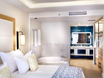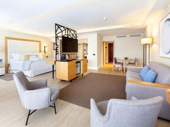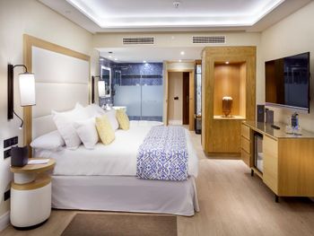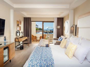 Красивое оформление отеля Gran Tacande выполнено в светлых тонах. Из просторных номеров открывается вид на окружающие горы или сады комплекса. Из некоторых номеров открывается вид на море. Гости номеров на уровне Gold могут посещать эксклюзивную частную зону San Sebastian с пейзажным бассейном и гидромассажную ванну на 8 человек.