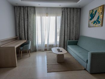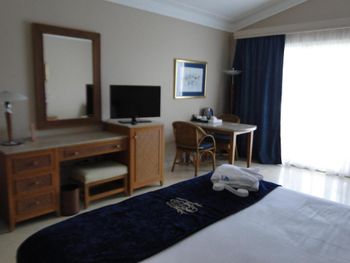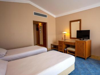 Номера и правда "уставшие" - старая мебель, заедают дверцы шкафов. Кое-где оторваны гардины на окнах. Мебель на балконе тоже старая. И на мой взгляд, номера грязные - стены в пятнах, каменные столешницы тоже. Уборка оставляет желать лучшего - то не принесут свежие полотенца, то не поменяют постельное белье. О каждом таком действии надо просить, звонить или лично говорить уборщику. За 12 дней ни разу не помыли раковину и зеркала. Стекло на балконе в пятнах и отпечатках пальцах. О том, чтобы помыли пол, тоже надо просить уборщика. Мне кажется, персонал не обучен убираться. Так же мы играли в бильярд в лобби. Нет мела, столы требуют ремонта. Есть стол для русского бильярда, но нет набора шаров. Сломанные кии. Для игры в большой теннис тоже стоило бы обновить инвентарь. Резюме - складывается впечатление, что на некоторые вещи управляющий отеля просто не смотрит. Как то уборка, чистота номеров, новый спортивный и развлекательный инвентарь.
