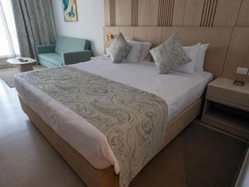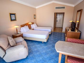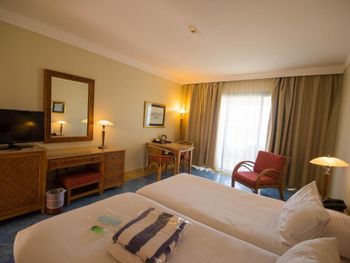 Этот номер был забронирован отдельно для подруги, которую я не смогла подселить к себе в номер, так как на ресепшене попросили доплату за второго человека $70, учитывая, что сам номер стоил $40. Потому оказалось выгоднее забронировать еще один номер. «Посчастливилось» воспользоваться услугой массажа в местном спа салоне. Массажистка была женщина и это был самый худший массаж в моей жизни. Расслабляющий массаж оказался очень болезненным. Рестораны и анимация находятся возле ресепшена, поэтому если вас поселили ближе к пляжу, то придется много подниматься по лестницам до ресторанов. Вход в море каменистый, пляж в лагуне в разы лучше. Вокруг отеля - пустыня, пешком никуда не дойти, только на такси. Продуктовых магазинов на территории нет. При заселении в отель у вас отберут открывашку для вина, которую вы привезли с собой, чтобы отметить свой день рождения. Отдадут только при выезде, если вы не забудете. На вечерней анимации включали только местную арабскую музыку, ни одной европейской песни.