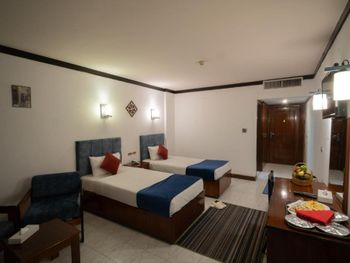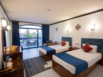 Отель для непритязательных постояльцев которые не замечают мелких недочётов в виде уставшей мебели, подтёков в ванной комнате, серых простыней, гремящего кондиционера и т.д. а в остальном практически всё хорошо! Круглосуточная стойка регистрации на которой можно объясниться по-русски, wi-fi в номере правда слабенький.. но для Египта - это большая редкость, вполне достойное питание. Возят на свой пляж на автобусе два раза в день но мы обошли множество окрестных платных пляжей для получения более ярких впечатлений. Также возят вечером на автобусе за 1 доллар в местные точки притяжения - Сохо, старый город, ноама Бей. Дают там 2 часа на прогулки и привозят обратно. В 15 мин пешком супермаркет манго который примечателен обилием товаров, правильным пересчётом фунтов в доллары и который принимает практически любую валюту включая перевод в РФ по СБП.
