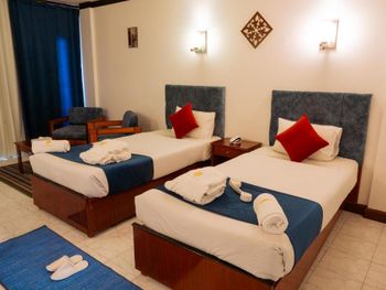 Приезжаю в отель второй раз. Отношение цена качество лучшее. Питание очень вкусное, разнообразное, мясо и рыба порционно, мне хватало. Персонал стал семьёй, все доброжелательные, дружелюбные. Есть бар, наливают пиво и местный алкоголь, коктейли. У меня был день рождения, устроили в честь этого дискотеку, вынесли торт. Номера просторные, хорошие, все работает. Пляж небольшой, но места всем хватало. Риф живой и необыкновенно красивый. Два раза в день возит автобус до обеда и после. Расположение хорошее недалеко от улицы Меркато, где много недорогих магазинов и в старый рынок можно дойти пешком или подъехать за доллар на такси. Вообщем все супер, приезжайте не пожалеете.