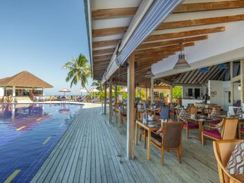 Питание: питание организовано хорошо, предусмотрен шведский стол, а также два ресторана на выбор (один из них включен в систему "all inclusive"). Выбор блюд достаточный, нареканий по качеству еды не возникало. В основном мы предпочитали местную кухню, включая блюда из тунца и мальдивские блюда со специями. Стоит учитывать, что на Мальдивах из местных продуктов доступны в основном тунец, кокосы и бананы; остальное импортируется, преимущественно из Индии и Шри-Ланки.