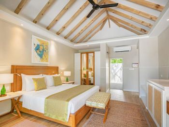 Просторные и светлые номера отеля Ellaidhoo Maldives by Cinnamon - 02 Kids Under 12 Stay & Dine Free располагают удобным гостиным уголком с диваном. Из окон открывается прекрасный вид на океан. В номерах установлен телевизор с кабельными и спутниковыми каналами, а в ванных комнатах есть наполовину вода.