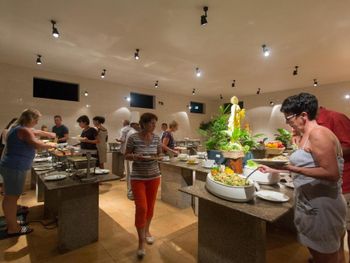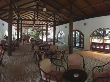 В комнате шкаф для одежды маленький, неудобный и не функциональный, это просто ниша в стене с одной штангой для вешалок и дверцами. Инвентарь для бадминтона весь разбит, есть площадка для волейбола, но нет аниматора, который бы сорганизовал гостей отеля для активного отдыха, стол для настольного тенниса настолько в ужасном состоянии, что играть на нем просто невозможно. Для детей нет ничего, кроме одного разбитого настольного футбола! Нет игровой площадки, нет настольных игр, нет игрушек для пляжа, которыми дети могли бы поиграть и вернуть обратно. Для детей нет даже еды! Да, не удивляйтесь, вся еда в ресторане настолько острая, что либо ваш ребенок будет голодный, либо будет питаться пустыми макаронами, которые еще нужно выпрашивать. Несколько дней были ужины, после которых даже взрослые оставались голодными (вся! пища острая невероятно). Неудобное время приемов пищи: завтрак 7:00-9:00 (5:00-7:00 по МСК), обед 12:30-14:00 (по пятницам с 13:5 до 14:15), ужин 19:30-21:00. На мой взгляд завтрак очень рано, ужин очень поздно. На завтраке в ресторане воды нет, только два вида сока, молоко, чай и растворимый кофе. Для «всю включено» в баре отдельное ограниченное меню (капучино не входит). В ресторане за вами на все время отдыха закрепляют столик (может не повезти и столик окажется возле туалета или на проходе).