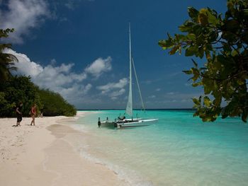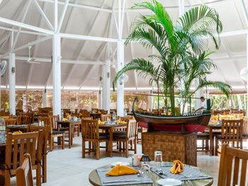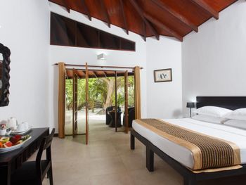 Остров неухоженный, много сухих веток, листьев, торчащих корней деревьев, на самом острове не считая пляж песок грязный, темный , по дорожкам из-за большого количества песка неудобно ходить и как таковы дорожки необорудованы, на острове много высоких пальм с кокосами , их никто не сбивает как на других островах, постоянно боишься что упадет на голову кокос; питание посредственное и настолько много специй, что некоторые блюда невозможно кушать, лучше было бы поставить специи на столы и кому надо добавил бы себе, салфетки в стаканах и приборы закутаны в салфетки что создает вид столовой , лучше бы купили недорогие салфетницы; мы жили в вилле "Пляж" , очень маленькая, телевизора нет, бегают большие черные муравьи, сейф не работал, пляжные полотенца не меняют, и самое главное неудобное время трансфера в аэропорт о чем не предупредили! У нас рейс в 23:45, нас отвезли в аэропорт в 16:45 поскольку это последний трансфер с острова и нам пришлось ждать 7 часов в аэропорту , хотя с других островов отдыхающих привозили в 20:00 - 21:00, считаю надо быть более клиентоориентированными.