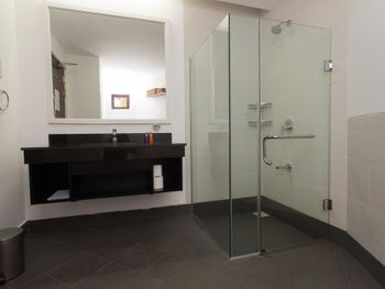 неудобная лейка в душевой кабине, несъёмная и напор воды маленький, к удивлению можно отнести то, что вода для обмывания ног солёная, такое встречаем впервые