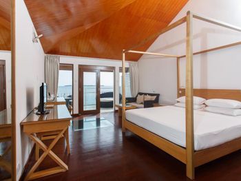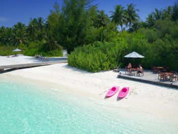 Сам остров с белоснежным песчаным пляжем является идеальным уголком спокойствия, где можно укрыться от суеты в пышных тропиках. В отеле располагаются уютные номера, а также пляжные бунгало и виллы на воде.