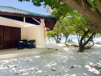 Недалеко от Мале. Прямой выход из номера к морю. Много свободных лежаков. Есть риф. Неплохое питание
