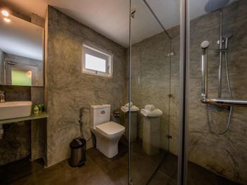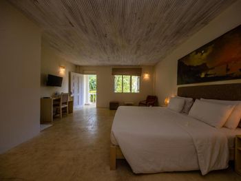 В номерах на первом этаже нет вентиляции. Очень большая влажность особенно в дождь. Сильно пахнет сыростью, постель влажная, вещи не сохнут. В номере бывают муравьи, паучки, ящерицы
