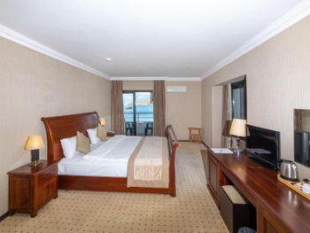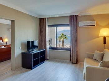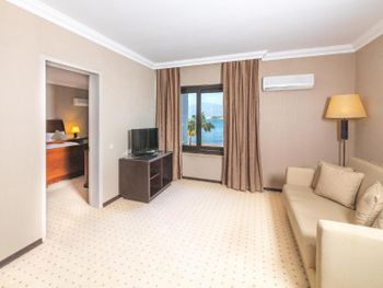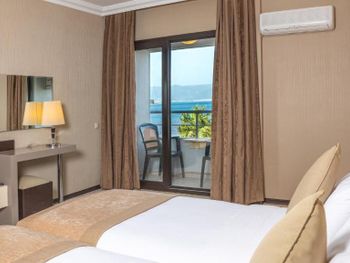 Очень понравился отель. нас сразу по приезду накормили и заселили. Дали номер с видом на море, без доплаты. Большой и красивый номер. Хорошая уборка, замена полотенец каждый день. В номере есть чайник, вода , кофе, чай. Хороший и большой пляж, всегда находили свободные шезлонги. Есть бар на пляже, кафе с мороженым и пирожными. Отличная работа официантов. Всегда быстро убирают посуду, разносят напитки, стелят свежие скатерти для каждого нового посетителя. Стол свободный в ресторане всегда можно найти, благодаря работе официантов