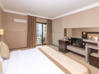 Больше всего понравился вид из окна на набережную Ичмелер. Очень красивый пляж и хорошего качества лежаки. Понравилось мороженое и турецкий чай в течение всего дня в баре у отеля. Неограниченное количество воды и прочих приятных моментов. Каждый день меняли полотенца и убирались в номере. Вкусный амлет готовили повара по утрам. Официанты очень внимательные и хорошо за нами следили. Нина заказала нам очень хорошее такси класса люкс и мы были довольны.