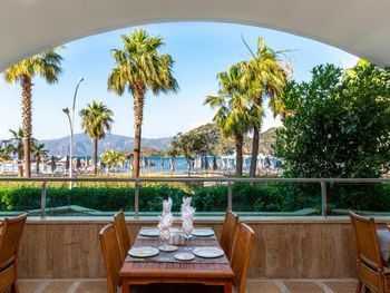 Пляж действительно Премиум, как и сказано в названии отеля! Ресторан: нет необходимости ждать или искать работников, они всегда рядом. Отличные работники. Бармены тоже хорошие. В ресторане особенно мне запомнились Yashar и Kerim. Они очень радушные люди, всегда были внимательны, общительны, заряжали хорошим настроением, профессионалы своего дела. Большое им спасибо. Еда хорошая и вкусная! Было всё: мясо, рыба, индейка, курица. Выбор не огромный, но качественный. Пицца вкусная. Повару огромное спасибо, он всегда с душой всё готовит. Мороженое доступно во время работы ресторана. В отеле хороший управляющий, он постоянно контролирует весь персонал, с утра до ночи на ногах на объектах. Расположение отеля изумительное. Огромный пляж, с сотнями новеньких облегченных премиум-шезлонгов "slims", не требующих матрасов. Там не будет проблем с местами. Вид с пляжа фантастический: на необитаемый остров в километре от берега. А также причал с яхтами, на котором пришвартованы также 2 катера береговой охраны Турции. И вид на саму бухту Мармарис-Ичмелер. Бар у пляжа: до 12 ночи. Коктейли не заказывал, пил только вино. Оно сухое и нормального качества. Бар у бассейна с обратной стороны здания, до 6 вечера. Хорошая музыка на бассейне, шикарный вид на горы, мало людей. Кондитерская: до 6 вечера, хороший кофе, очень небольшой выбор сладостей, и это хорошо, меньше белого яда получите :) Все печенья и штрудель вкусные. Есть не сладкие варианты. Очень близкое расположение к пляжу, вышел из отеля и ты сразу на пляже, перейдя общественный променад, который рекордно длинный в Турции: чуть ли не 12 км, он проходит через весь посёлок Ичмелер и идёт аж до Мармариса. Идеально для прогулок и велосипедов. У отеля как-раз таки примерно конец променада, ну или начало. Вдоль променада у крупных отелей есть остановки водного такси, по маршруту центр Мармариса - Ичмелер - Турундж. Турундж это тоже курортный посёлок дальше Ичмелер, со своими пляжами, кафешками, яхтами.