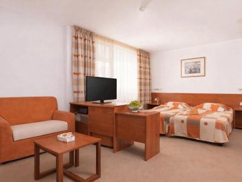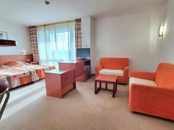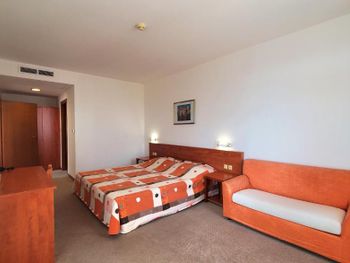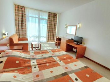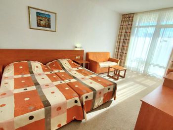 Скудный завтрак и ужин (полуфабрикаты). Бассейн работает до 18-00. Платный вай-фай (8 левов в день). Услуги массажиста тоже до 18-00. На ужин не подают напитков.