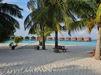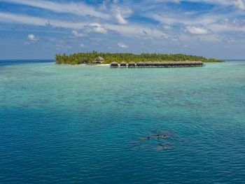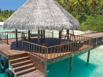 Риф замечательный, длинной с полкилометра (легко доступная часть и ещё в три раза больше если есть ласты ) мелких рыбок насчитано всякие привсякие, видели акул, черепах три вида скатов, мурен, осьминога, рыбу камень, наполеона, да много кого)))…. каждый день кого-то риф показывал). До края рифа от пляжа плыть 15 метров… очень легко и удобно. Течение слабенькое вдоль рифа, ложишься на живот и медленно плывешь полкилометра как на травелаторе в океанариуме))) На острове живут красивые летучие лисицы 🦊 и раки отшельники… Есть место для эффектной фотографии с наклонённой пальмой 🌴 Есть хороший пляж мелкий для детей и не плавающих. Ресторан очень вкусный. Домики одинаковые, но есть подуставшие, есть получше… если домик не понравился , попросите и Вас переселят без проблем. Цена обеда от 40$ на человека, цена бокала пива 8$, коктейль 🍸 15$, вино бутылка от 40$, докупить на месте до олл инклюзив 100$ на одного человека за одни сутки. Так что сами рассчитывайте если нужны обеды или любите выпить))) посчитайте может выгоднее заранее коюзив взять. Персонал внимательный. Это 4 ка - не пятерка, значительно дешевле пятерки, но зато полноценный Мальдивских отдых вы подучите, прекрасное море, уютные домики с индивидуальными лежаками, все домики равноценные с видом на пляж и море 🌊