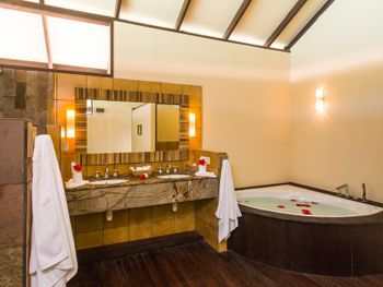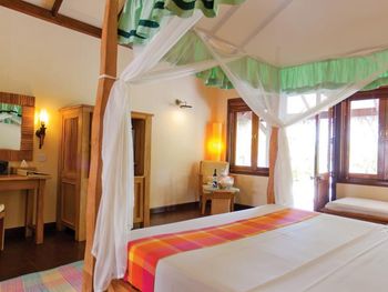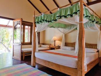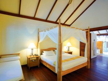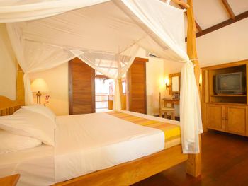Построенные на сваях просторные виллы располагают кондиционерами, соломенными крышами и деревянными террасами с шезлонгами. На всех виллах есть телевизор с плоским экраном, проигрыватель компакт-дисков и мини-бар.