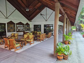 этой воды не хватит,- не беда. Можете смело налить в бутылку воду из под крана. Гарантирую, что вкус будет абсолютно одинаковый,- то есть, он будет одинаково противный. Я, на всякий случай, дополнительно кипятил всю воду для питья. Теперь, ещё о воде в кране. Напор холодной воды очень неравномерный и, как вы понимаете, о напоре горячей воды вообще говорить не приходится. Утром или вечером её либо просто нет, либо она течёт из душа струйкой толщиной с мизинец. На четыре номера, то есть на два спаренных бунгало один водонагреватель у становленный на крыше одного из них. Днём, с большой долей вероятности, Вам всё же удасться помыться тёплой или даже горячей водой. Если Вам очень хочеться помыться утром или вечером, то звоните на рецепшен и скажите, что нет горячей воды. Минут через 10 вода появиться и придёт человек от отеля что бы в этом убедиться. Далее, у Вас есть 5-10 минут чтобы помыться, пока вода из горячего крана не иссякнет. Бунгало расположены относительно друг друга ступенчато. С одной стороны это хорошо,- не видно террасу соседнего бунгало. Но если вам не повезёт с расположением, то внешний блок кондиционера на стене правого бунгало будет тарахтеть вам прямо на терасу. Если открыты окна, это тарахтение прекрасно слышно даже на кровате днём и ночью и звуки волн его не заглушают. Впечатление такое, что находишься не на курорте, а на заводе на берегу моря. Это самый многолюдный курорт из тех где я был. На пляже, в поле зрения находится человек 30. К тому же, ещё и персонал весь день, а не нолько ранним утром, как это принято на других курортах, постоянно мотается перед бунгало, - сгребает листья, возит тележки с утварью для уборки в номерах, или с кокосами на продажу. Приватности это, совсем не добавляет. Ещё, есть предложение к администрации курорта,- перпендикулярно пляжу, плотно посадить вдоль стен бунгало кусты или дереья на расстояние три - пять метров от крыльца.Тогда, народ не сможет постоянно мотаться вдоль бунгало непосредственно перед террасой.