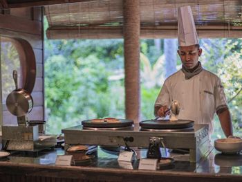 Перелет на лыжном самолете сложный и дорогой, по прилету доплатили , помимо бронирования, за перелет и какой-то экологический сбор почти 1000 долларов, это за взрослого и ребенка. Когда жили в одном бунгало-там пошарпанная мебель была, таракан. Переселили -мебель получше, но много муравьев, 2 ящерицы были в номере. Мы на них потом перестали обращать внимание. Плохо крутятся краны, сантехнику нужно менять. Приставучие кошки. Почему их не кормят? И при этом еду с завтрака не разрешают выносить кошкам, а они очень голодные. Ребенок естественно нашей едой кормил кошек, которую мы покупали, когда заказывали ужин в номер. Это неправильно держать на острове кошек за счет туристов, можно было бы их хотя бы подкармливать или разрешить выносить еду с ресторана для кошек, если сами не кормите. А то не очень то приятно проснуться утра, выйти на веранду, а там кошки лезут в номер и орут. Ворон очень наглый, тоже орет с утра и у бара на обеде, требует еду, близко подлетает, может утащить чего нибудь, если не следить. Назойливые мухи, иногда прилетают, лучше обедать под крышей. Не понравилось, что на завтраке сам не можешь брать еду, нужно ждать официанта, который положит тебе в тарелку выбранную еду, это неудобно. Недошведский стол. Почему не сделать свободно? Мне удобнее самой положить себе еду и налить кофе, чем ждать. Мы привыкли к шведскому столу, как во всех отелях европы. И некомфортно, когда ешь рядом стоит официант, который то кофе нальет то тарелку уберет, но это слишком навязчиво. Хотелось бы есть спокойно, а не когда на тебя смотрят за каждым движением