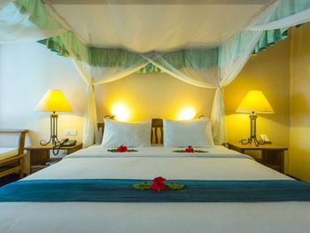 Неудобные кровати и подушки. Территорию все время убирают подметают, и в Целов все чисто и аккуратно, но много мест (там где туристы в основном не ходят) где горы кокосов и пальмовых листов ну и не опрятно получается. Думаю руководству отеля надо взять это на заметку, портит впечатление от отеля.