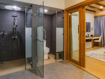 Завтрак и ужин оставили приятное впечатление. Каша, омлет, хлопья. Суп каждый день разный. Несколько видов гарниров. Мясные и рыбные блюда были всегда. Некоторые готовили прямо при нас. Просторный номер, широкая кровать. Санузел просто великолепен. Особенно понравилась терраса с видом на сад.