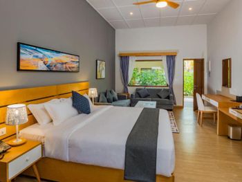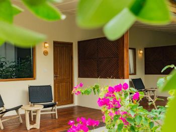 Прекрасное соотношение цена-качество Самое главное достоинство отеля, что он новый! Номера просторные, чистые, есть всё необходимое для комфортного отдыха. Есть несколько вилл, а, в основном, это номера с видом на море или, так называемым «видом на сад», т.е. это номера на второй линии от моря с кустарником перед входом. Территория отеля небольшая, но есть несколько красивых зон с видом на море. Всё, как на картинках красивого безмятежного отдыха:) гамаки, качели в воде, бассейн красиво «перетекающий» в океан. Очень хорошое питание! Вкусно, разнообразно! Хочу отдельно поблагодарить отель за организацию нашего рациона, понимая, что всё это ежедневное многообразие нужно ещё и привезти на остров.
