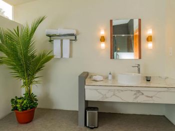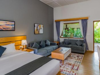 Очень понравилось расположение и сервис. По всем интересующим вопросам мы обращались к Еве, она все разъясняла и подсказывала. Когда мы приехали, людей было немного, очень комфортно, было впечатление, что мы с мужем на острове одни, к выходным людей становилось больше, но мы это замечали только в ресторане, береговая линия очень большая, лежаков много. Вода в океане великолепная: температура, прозрачность, чистота. Мы с собой привезли надувной матрас и не выходили из воды по 1,5 часа. Вход местами с рифами, затем сразу глубина. Мы брали завтрак, обед и ужин. Питьевая вода была в любом количестве в номере и в ресторане. В номере есть чайник, чай и кофе растворимый. Очень понравилось питание, разнообразное. Нам хватало полностью. Иногда кормили по меню, можно было выбрать, иногда шведский стол. Некоторые десерты в меню были великолепны. Персонал в ресторане знал наши предпочтения и всегда заботливо ставили нам чайник с чаем. Есть спортзал с гантелями, беговыми дорожками, велотренажерами и прекрасным видом на пальмы. Каждый вечер ходили играть в настольный теннис, там практически всегда было свободно. В бассейне для всех желающих проводили водное поло. Отдых очень понравился, мы отдохнули и морально и физически, от интернета в том числе. Рядом с нами жили ребята с детьми, но мы никого не слышали. Перед входом можно оставить шляпы, шлёпки, матрасы, ракушки, очень удобно. На входе есть зонтики на случай дождя. Телевизор большой, мы брали жесткий диск и подключали со своими фильмами и сериалами. В номере всегда было прохладно, комфортно, номер просторный, ванная комната довольно большая.