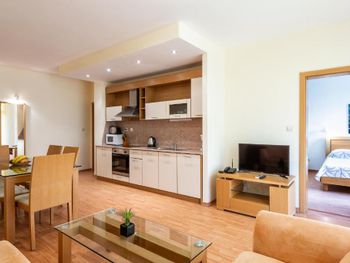 Нам очень не понравились апартаменты. Расположение отличное, но состояние в котором находится номер не соответствует цене. Всё старое и рассыпается. Не хватает многих принадлежности, которые на сегодня являются необходимостью. Считаем, что оборудование, мебель, посуду надо обновлять. Место очень красивое, отдыхаем не первый год. Разочарованы впервые.