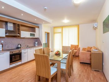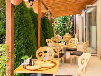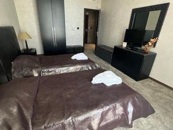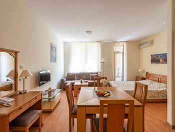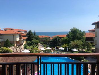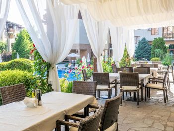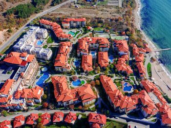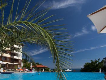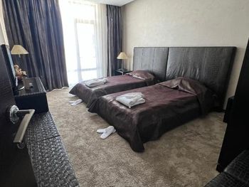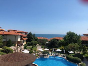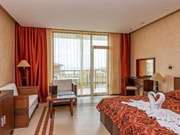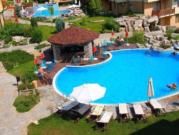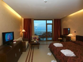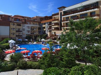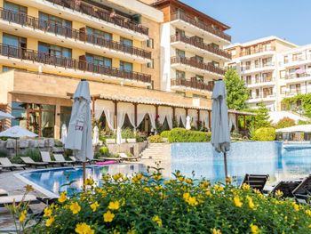 Замечательный отель. Есть корпус без кухонь. с питанием. И много апартаментов с кухнями и всеми удобствами. Прекрасное питание, очень разнообразное, огромное колиество фруктов и овощей. Мясо и рыба каждый день разная. Территория просто сказочнпая, утоппает в растениях и цветах. 7 бассейнов, возле каждого отдельного корпуса. Море теплое и читсое. Лежак и и зонты на пляже6 платные по 8 лев, что было неприятной неожиданностью. Но, все были на своих подстилках и со своими зонитками. Пляж большой. На пляже 1 бар и 1 рыбный очень хороший ресторан. На территории отеля еще ест итальянский ресторан. и оснвной в центральном корпусе. Есть лифт к морю. Постельное меняли 1раз в 3 дня, полотенца каждый день. На территории магазин с продуктами. В пешей доступности - 1км гипермаркет. Остановки маршруток через дорогу. Очень тихо и комфотно, нет пьющих и громко отдыхающих