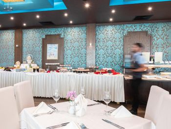 Отдельно стоит упомянуть о питании. Ни в коем случае не стоит брать полный пансион. Дело в том что с завтрака остаётся достаточно много еды (надеюсь не объедков), и её нужно куда-то девать, отсюда появилась пицца на обед с мясом с завтрака, мясная нарезка также идёт по второму кругу, а если колбаса осталась, её много и нельзя уже её выставить на стол (появился запах) то гениальный повар решил добавить её в тушёную телятину! После моего вопроса как колбаса оказалась в тушёной телятине, мне сказали что это такой рецепт, на просьбу показать карту рецептов тупо отморозились...