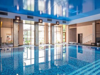Красивый, большой комплекс. Есть подземный гараж. Номер просторный с хорошими шторами, можно спать до обеда.