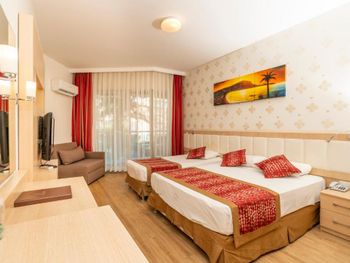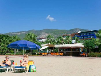 Возможно мне не с чем сравнить, т.к. это моя первая поездка в Аланию (в т.ч. на пляж Клеопатра), но у меня вызвало шок следующее: 1)в отеле всё платно: лежаки, зонты, пляжные полотенца, сейф, на завтраке и ужине все напитки тоже (при чем об этом нас НЕ предупредил официант и мы за 2 пива и 2 сока из пакета отдали 78 лир) 2)вся территория на фото (с кортами, лежаками. фонтаном) - это все общественная зона. Сам отель имеет лишь маленький бассейн 3)номер был уже уставший: замок входной двери был на последнем издыхании и часто не хотел закрываться; банные полотенца и постельное белье тоже уже устали (били даже явные пятна на одеяле в первый день); дверь на балкон плохо закрывалась. 4)из банных принадлежностей были только шампунь, лосьон для тела (не для мытья) и кусковое мыло для рук. Не было зубных щеток, пасты, геля для мытья тела, жидкого мыла, бритв, геля для бритья и всего остального без чего трудно обходиться. Плюс обновляли не каждый день Я была в разных отелях и твердо могу сказать, что это не 4 звезды, а 3.