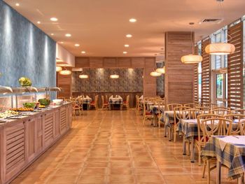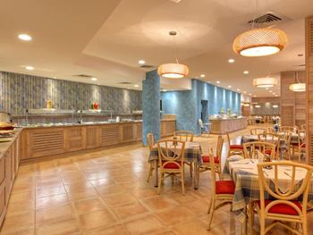 Ресторан нормальный, в принципе голодными не оставались, но еда всегда однообразная, особенно завтрак, иногда пару основных блюд меняли и всё. В отделе с овощами и фруктами всегда одно и то же. Выбор оставляет желать лучшего, от египетского All Inclusive в той же ценовой категории о-о-очень далеко. А очереди километровые (см. фото).