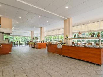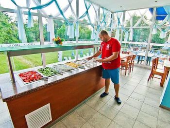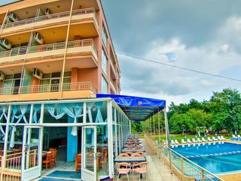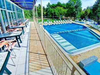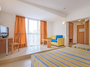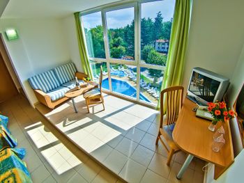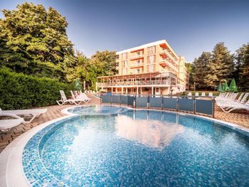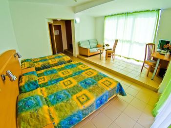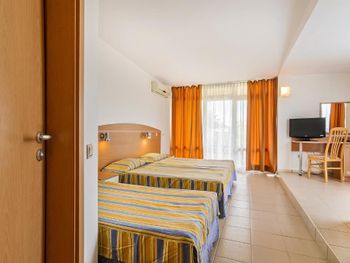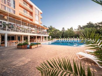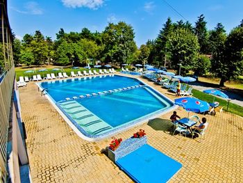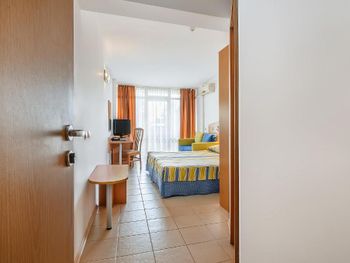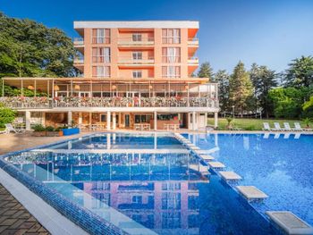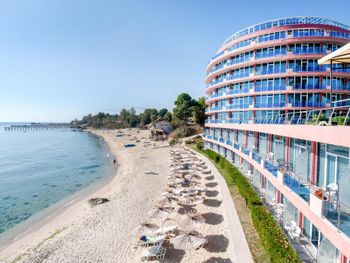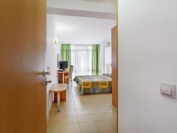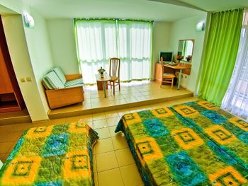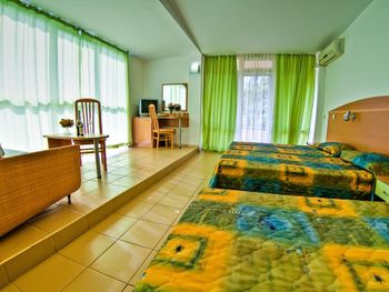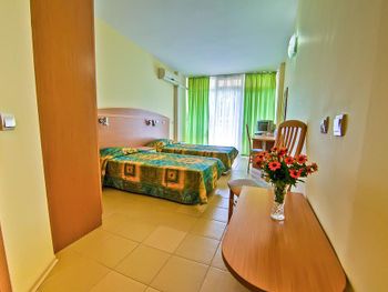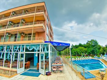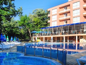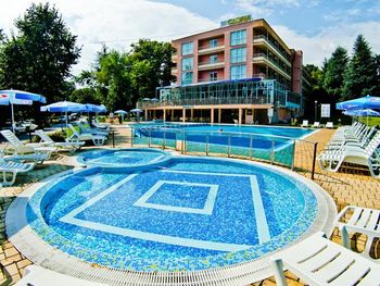 Супер питание: отлично организованное, вкусное, здоровое и разнообразное. Бар. Кондиционер охлаждает. Бассейн. Море недалеко (метров 500 - пляж без волн, более открытые пляжи - метров 700). Курорт не перегружен людьми, в отличии от других курортов Болгарии. Ночью тихо, можно отдохнуть. Рядом Lidl.