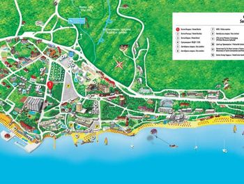 Единственное, что немного удивило — горки находятся в соседнем отеле через дорогу. Но даже это стало поводом для маленькой прогулки и никак не испортило отдых. До моря минут 10, но при этом очень хорошее расположение и можно добраться до 4 пляжей в течении 10-17 минут.