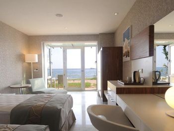 Собственный песчаный пляж находится рядом с отелем.